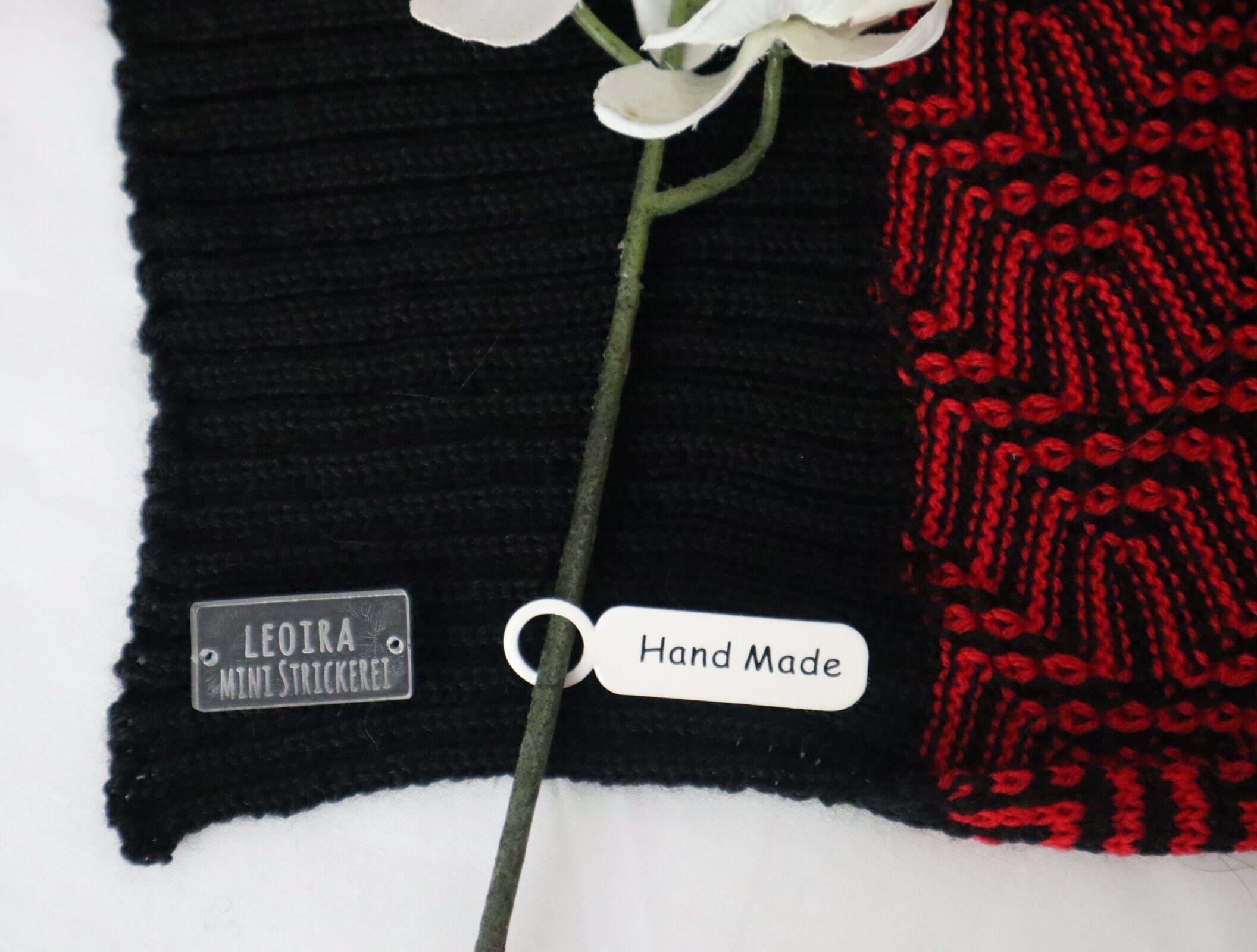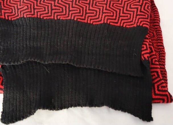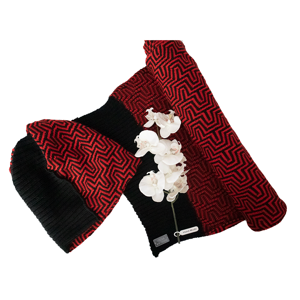 Handgestrickter Schal aus 100 % Merinowolle – Schwarz/Rot