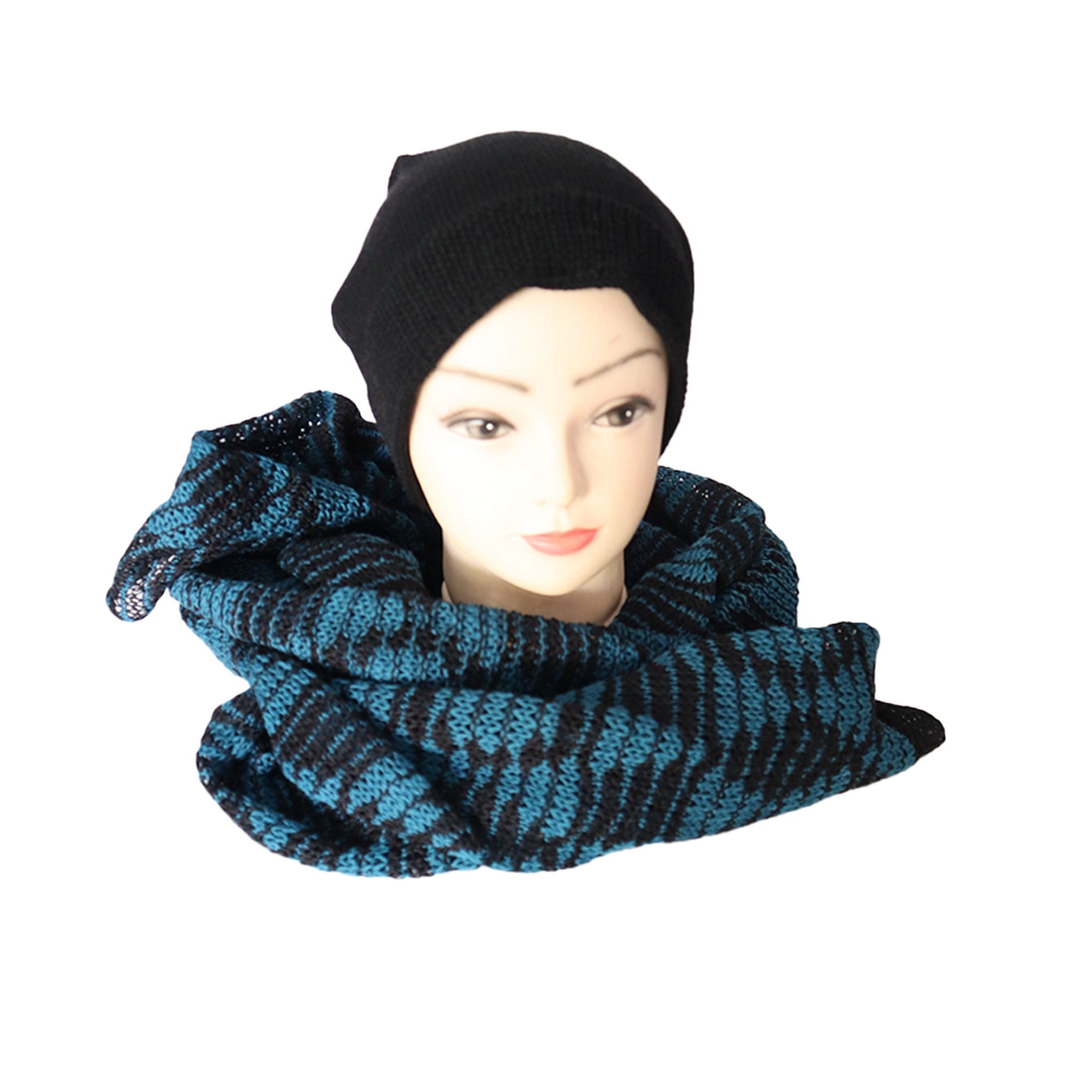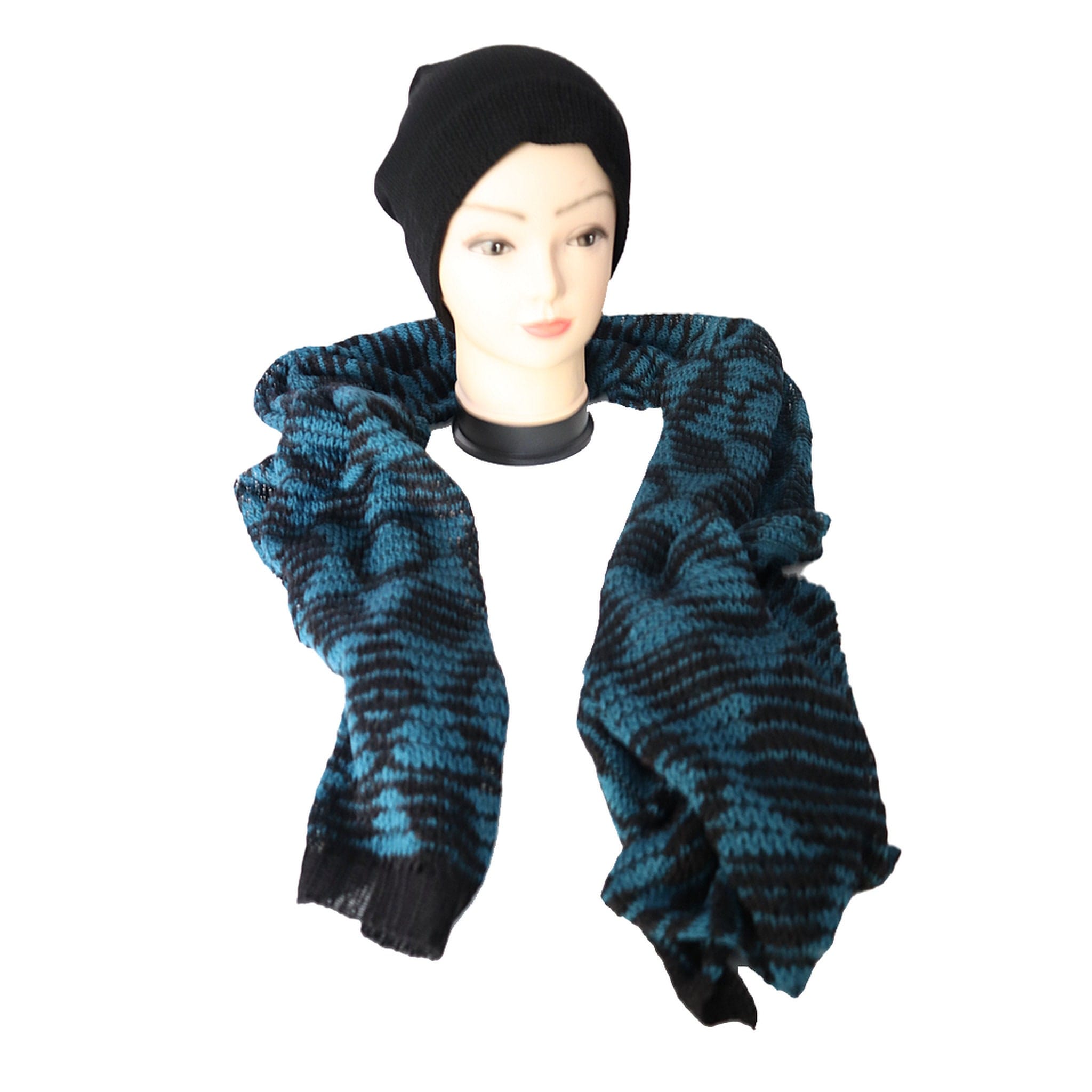 Leichte gestrickter Schal mit Muster schwarz türkis