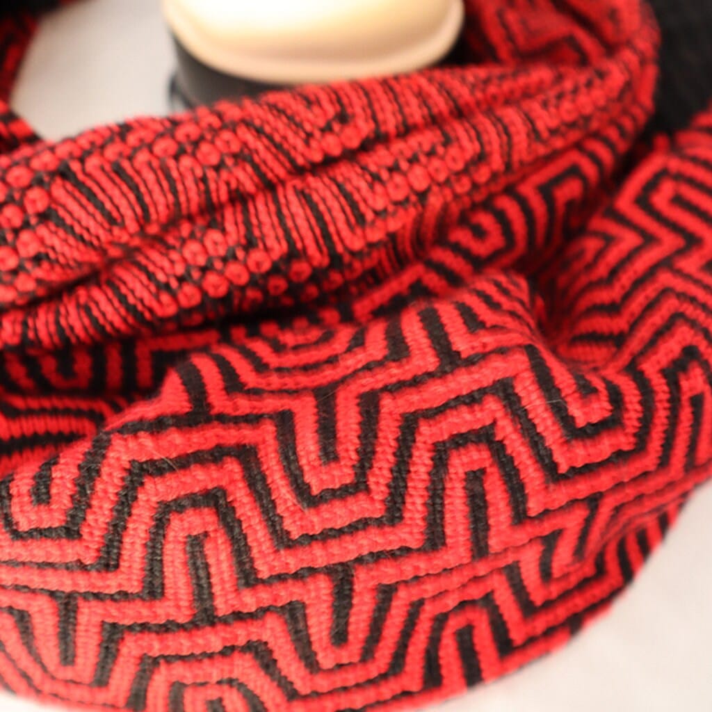 Gestrickte Schall aus 100 % Merino Wolle in Schwarz/Rot